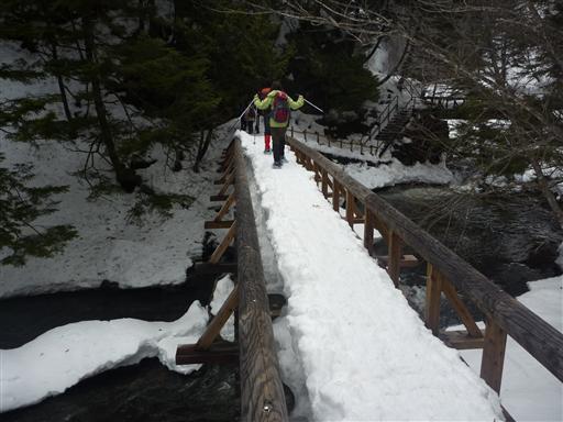 スノーシューを履いたままだと階段の上り下りが非常にやりにくい。