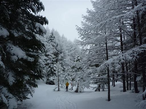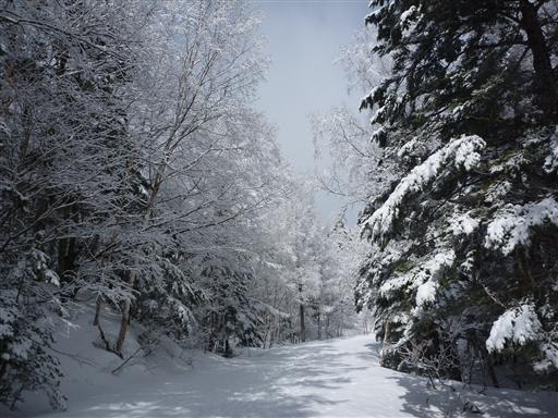 新雪に埋もれて分かりにくいコースを辿って行く。