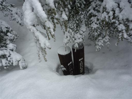 登山道脇にある標識。積雪は1mくらいのようだ。