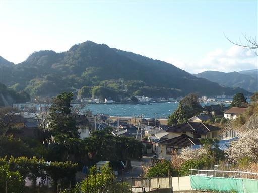 少し登ると背後に海が見えてくる。今日は非常に風が強いため、白い波があちこちで見える。