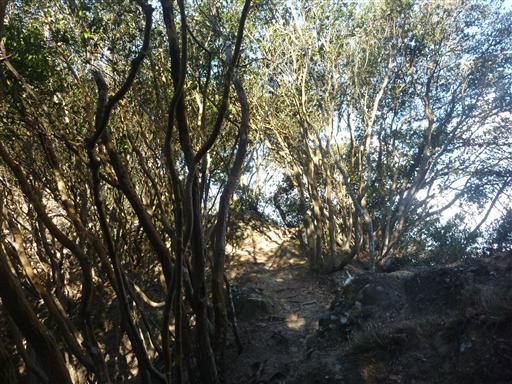 全体的に照葉樹林に囲まれている縦走路だが、