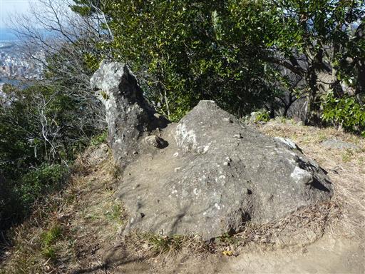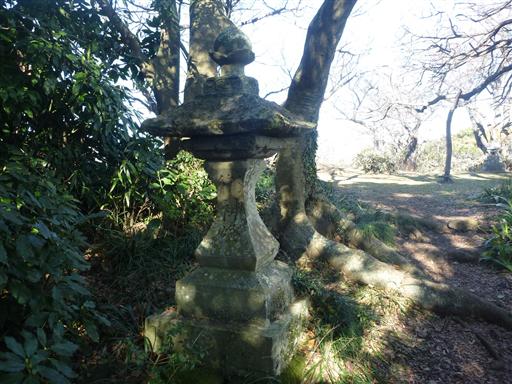 鷲頭山の山頂の一角には大きな石灯篭が立っている。
