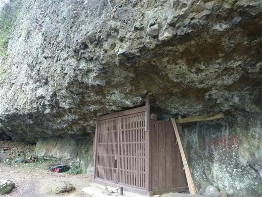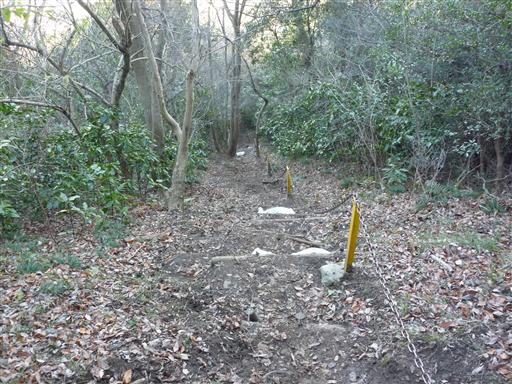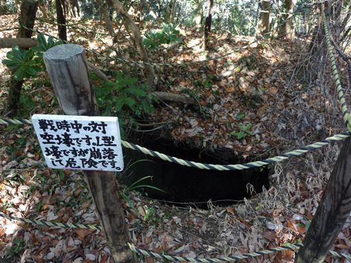 登山道脇にある対空壕。戦時中に掘られたものだ。