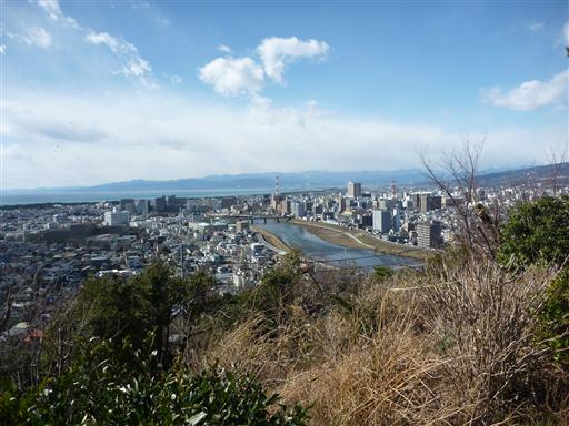 小さな公園で腰を下ろして少し休憩する。眼下には沼津市街と狩野川が見渡せる。