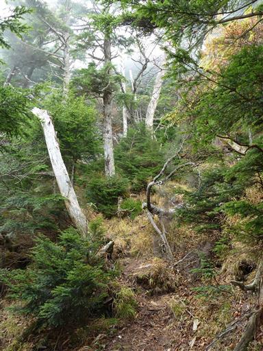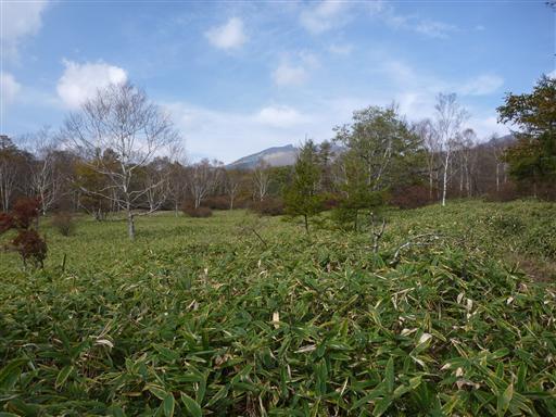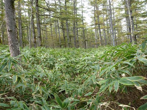 笹とカラマツしか見当たらない。