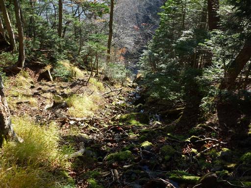 本日宿泊する小屋付近にも水場はあるが、時期が時期だけに枯れていないか心配。