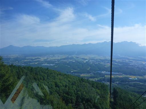 美ヶ原、霧ヶ峰の方面。こちらの山々は平べったくて目立たない。
