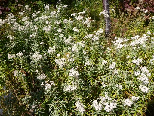 周囲は秋の花に彩られている。まずはヤマハハコがお出迎え。