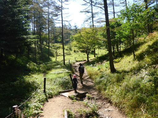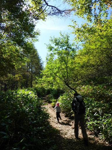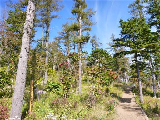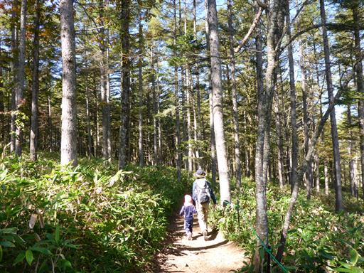 しばらく歩くと花がなくなり針葉樹林と笹原の中の道となる。