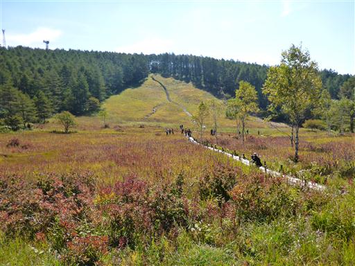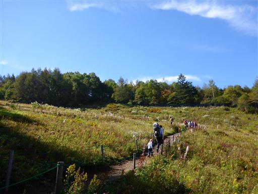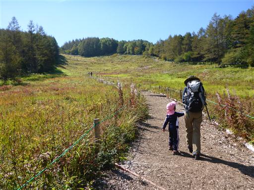 入笠湿原に戻ってくる。来た道と違う道を歩こうと考え、別の道を歩いていくと、