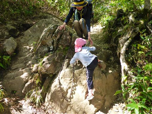娘も岩にしがみついて頑張って登っている。