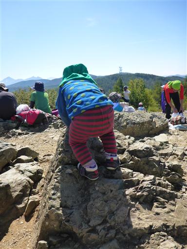 息子は昼食が終わると岩に登って遊んでいる。