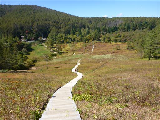 それほど広い湿原ではないが、美しい景観が広がる。周囲は完全に秋色だ。