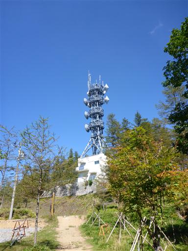 高台の上部には巨大なアンテナが建っている。