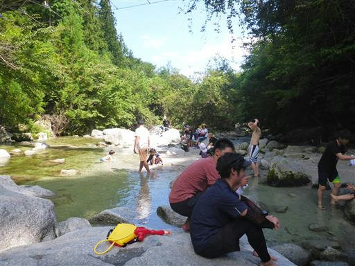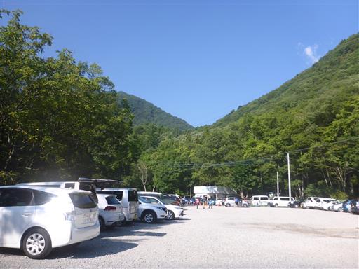 駐車場もいっぱいだ。川遊びとして人気の場所のようだ。