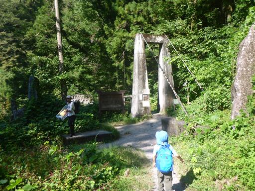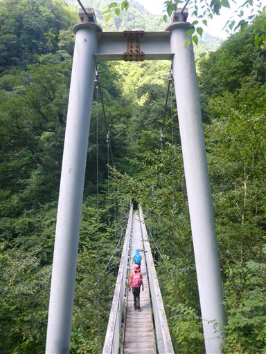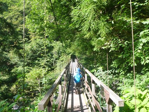 吊橋を渡る。頑丈な造りでほとんど揺れないが、5人ずつ渡るように書かれている。