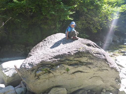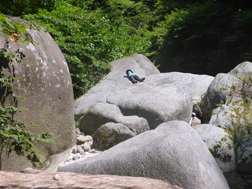 息子は一足先に下りて岩の上でお昼寝。この岩で昼食をとることにする。