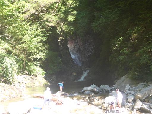旭滝に到着。周囲はヌルヌルのすごく滑りやすい岩でかなり注意が必要だ。
