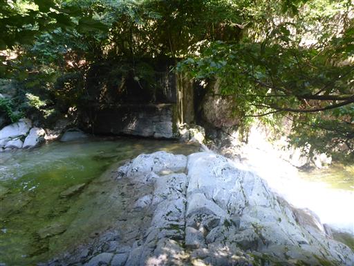 最初の滝に到着。しかしこの角度からではよく滝が見えない。