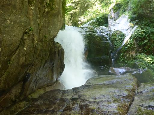 滝に近づいてみる。滝壺の側はヌルヌルの岩と木に覆われた場所で、