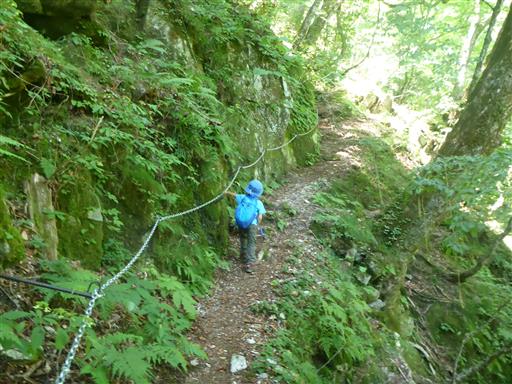 トラバース道が続き、右側は急斜面のため気が抜けない。