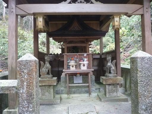 稲荷社に到着。両脇にひかえているのは狐の狛犬だ。