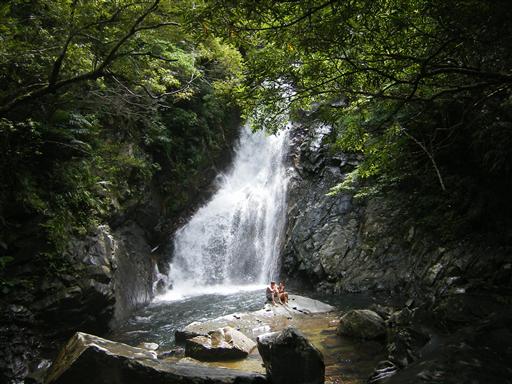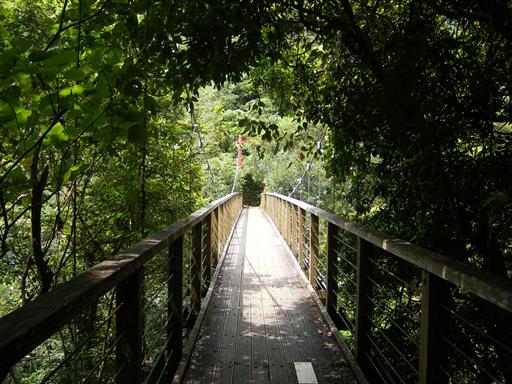 釣り橋を渡っていく。滝までは40分ほどで、結構アップダウンがある。