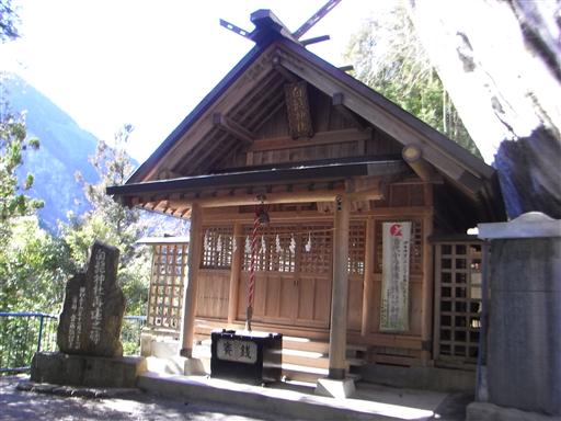 神社のすぐ脇にはオーバーハングした大岩が聳えている。