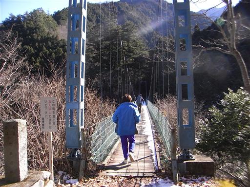 奥多摩渓谷に掛かる吊橋。