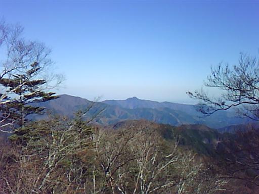 山頂からは左にこれから向かう御前山、右に明日向かう大岳山が見えている。