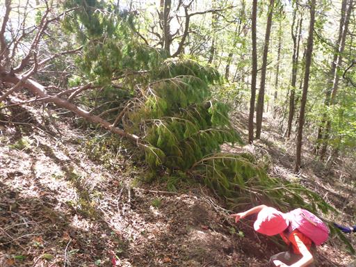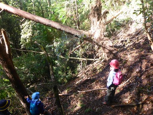 倒木を乗り越える。枝が多くて案外嫌らしい場所だ。
