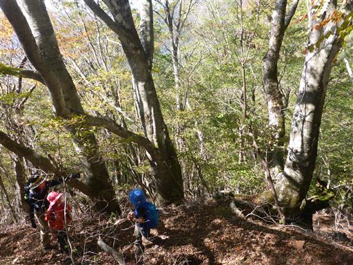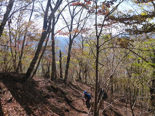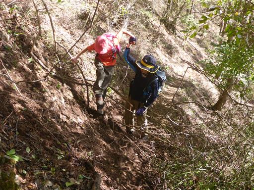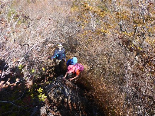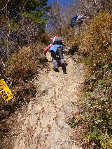 岩場を含む急な斜面を登って行く。