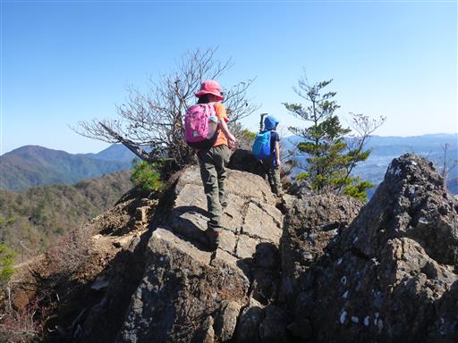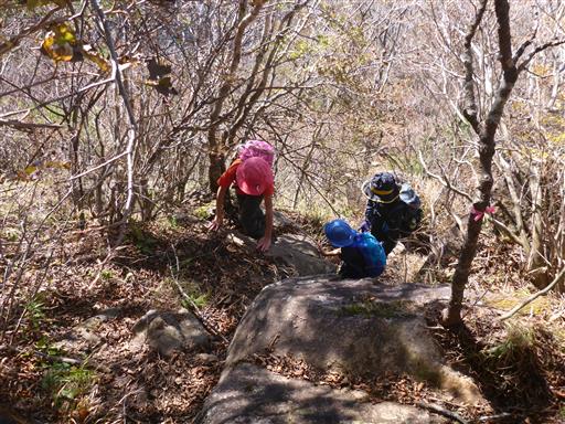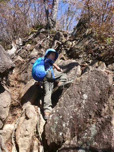今度は岩場の登り。簡単な岩場が続く稜線で、子供たちは楽しんでいる。