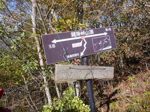 鍵掛峠に到着。このまままっすぐ進むと王岳に至るが、ここで左折して下山道に入る。