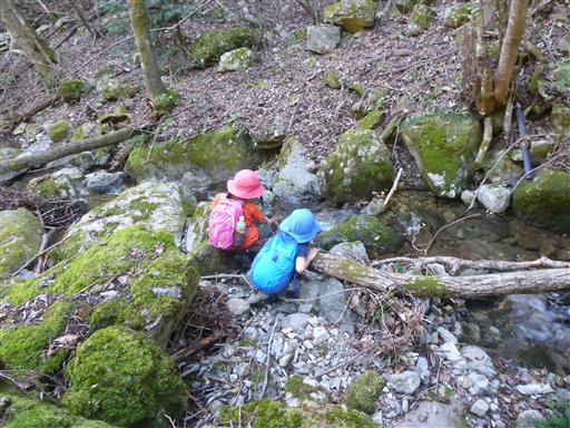 途中の沢で休憩して少し遊ぶ。子供は水が大好きだ。