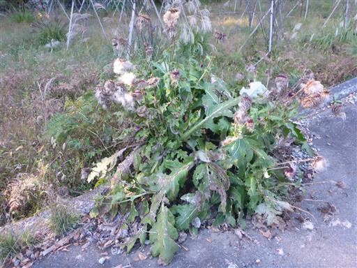 巨大なフジアザミ。子供の背丈くらいの大きさだ。花もでかい。