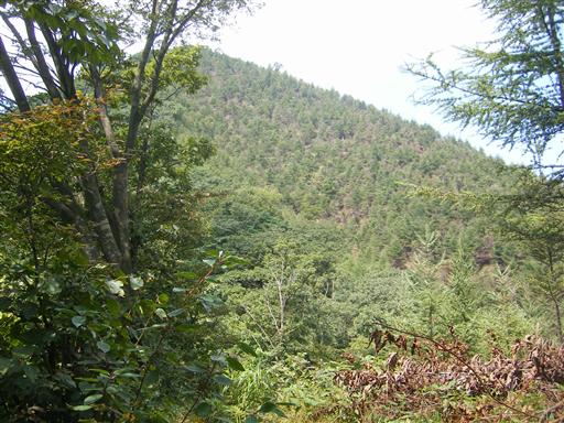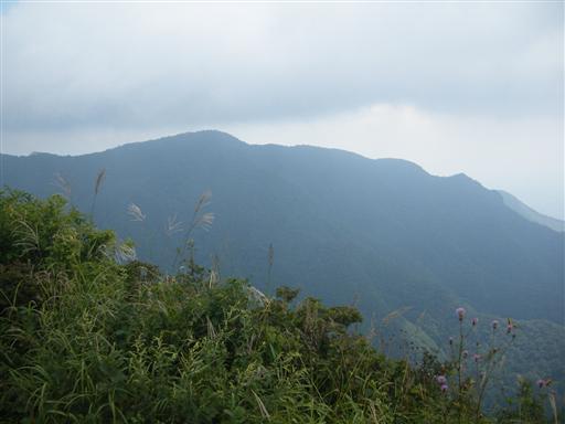 山頂からの眺め。霞んでいるため近くの山しか見えない。