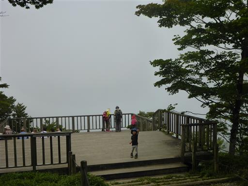 展望台に到着。雲に覆われて何も見えない。
