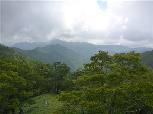 振り返ると大台ヶ原山の山頂部が見える。