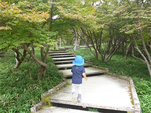おやつを食べて元気になった息子は速足で歩く。