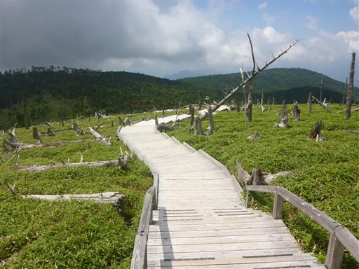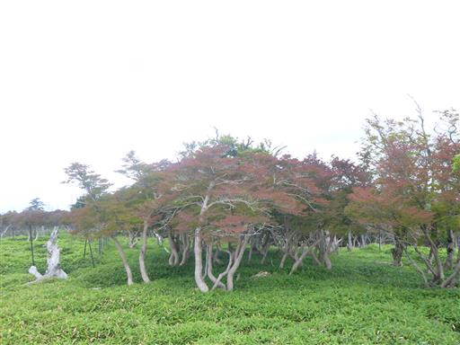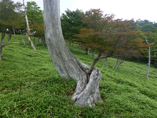 この辺りは笹原と枯れ木が点在している独特の風景だ。
