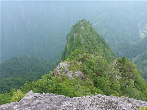 足元の鋭い痩せ尾根が眼下に落ちていく。