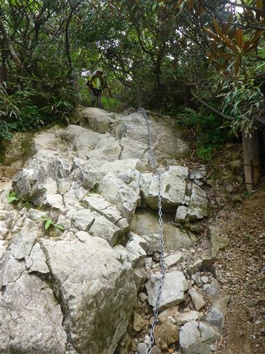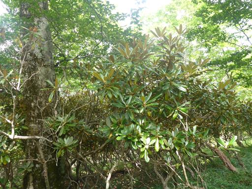 この辺りはシャクナゲが生い茂っている。ツクシシャクナゲとの標識がある。