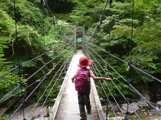 おやつ休憩を取ったら吊橋を渡って先に進む。