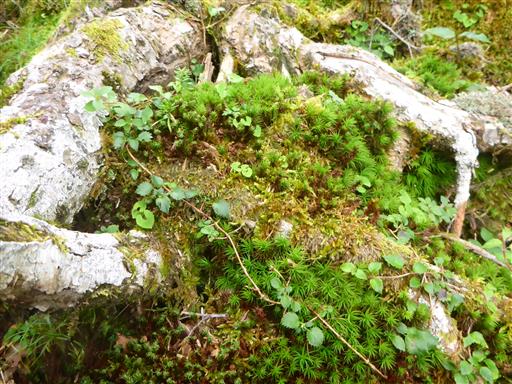 枯れ木の上に、子供の木が生えている。