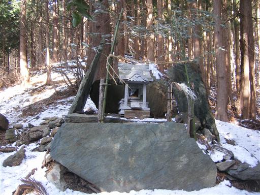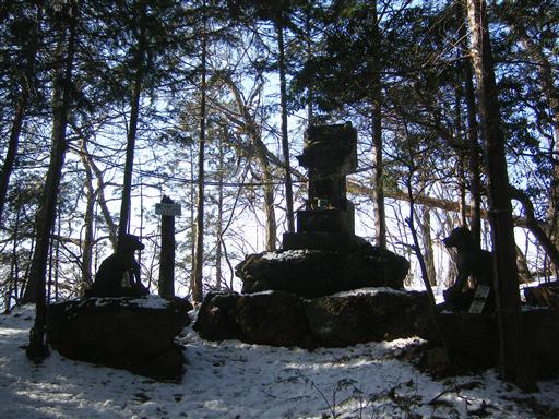 旧定峰峠に到着。ひっそりとした峠には祠が祀られている。