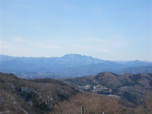 山頂からは大展望が得られる。真中の白い山は浅間山。