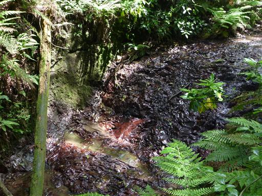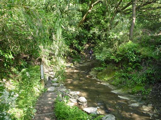 下山地点からは車道に沿って整備された沢沿いの遊歩道を歩く。