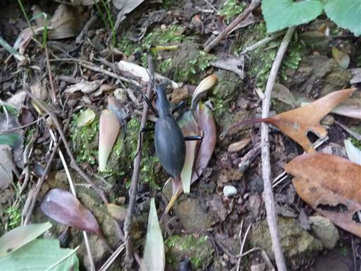 足元に大きな虫を発見。マイマイカブリだろうか?