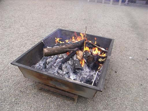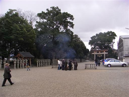 境内の真中では火が付けられていて、古い矢などが燃やされている。